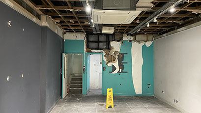 When OCH moved into 170 Commercial Street the premises were in a shocking state. Whilst it was unoccupied some squatters lit a fire that destroyed nearly half of the downstairs area. Before it could be decorated a huge amount of work had to take place. Local, Newport builder and Chartist supporter Laurence Waite stepped up. Together with Director David Daniel and Trustee David Mayer they removed and rebuilt the fire damaged framework and fitted fireproof plaster. Over two months the two Davids wallpapered the damaged rear area and many other supporters stopped by to help paint the shop.